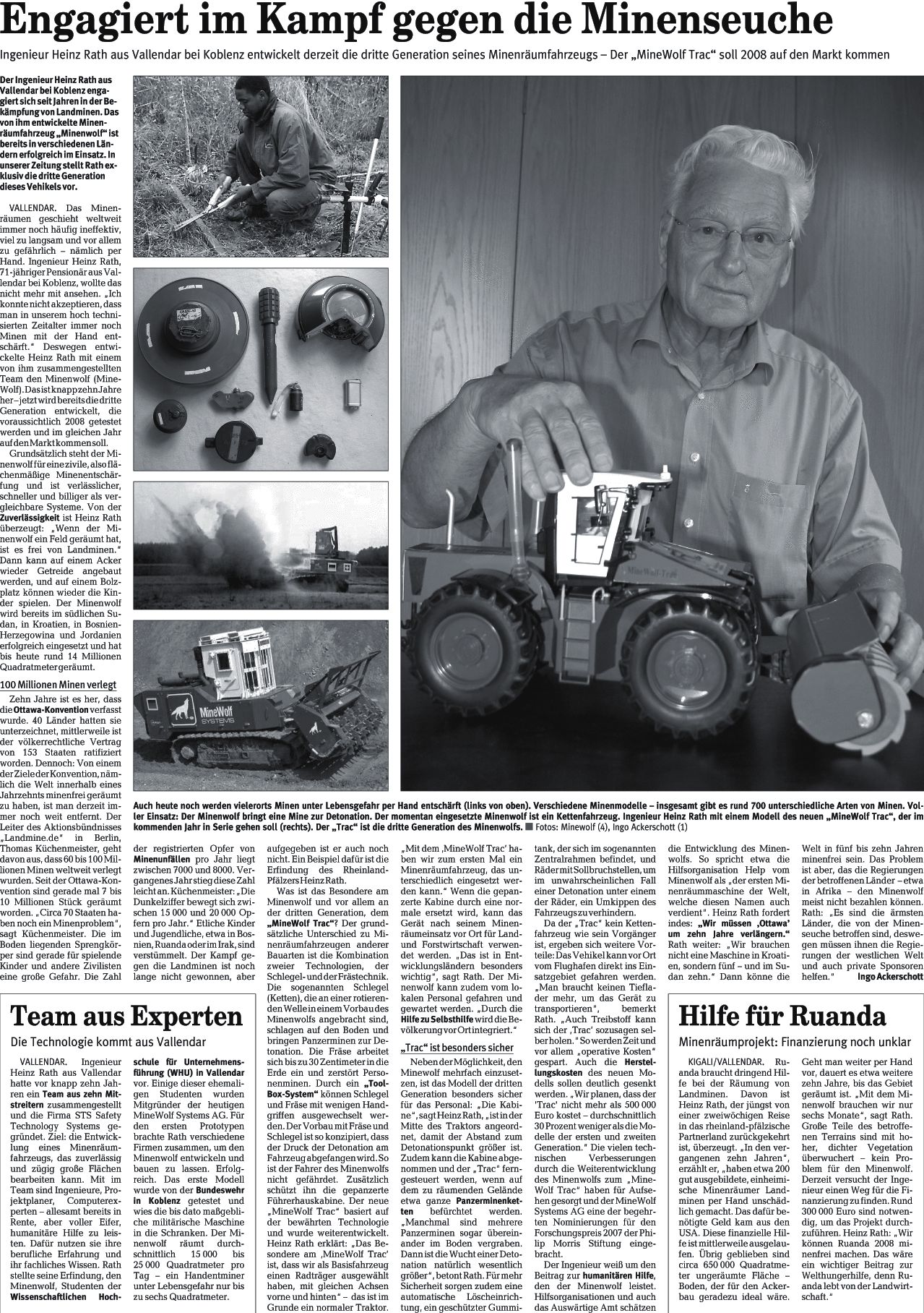 Ingenieur Heinz Rath aus Vallendar bei Koblenz entwickelt derzeit die dritte Generation seines Minenräumfahrzeugs - Der "MineWolf Trac" soll 2008 auf den Markt kommen.