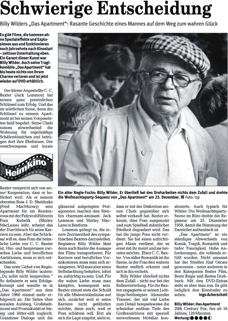 Billy Wilders „Das Apartment": Rasante Geschichte eines Mannes auf dem Weg zum wahren Glück.